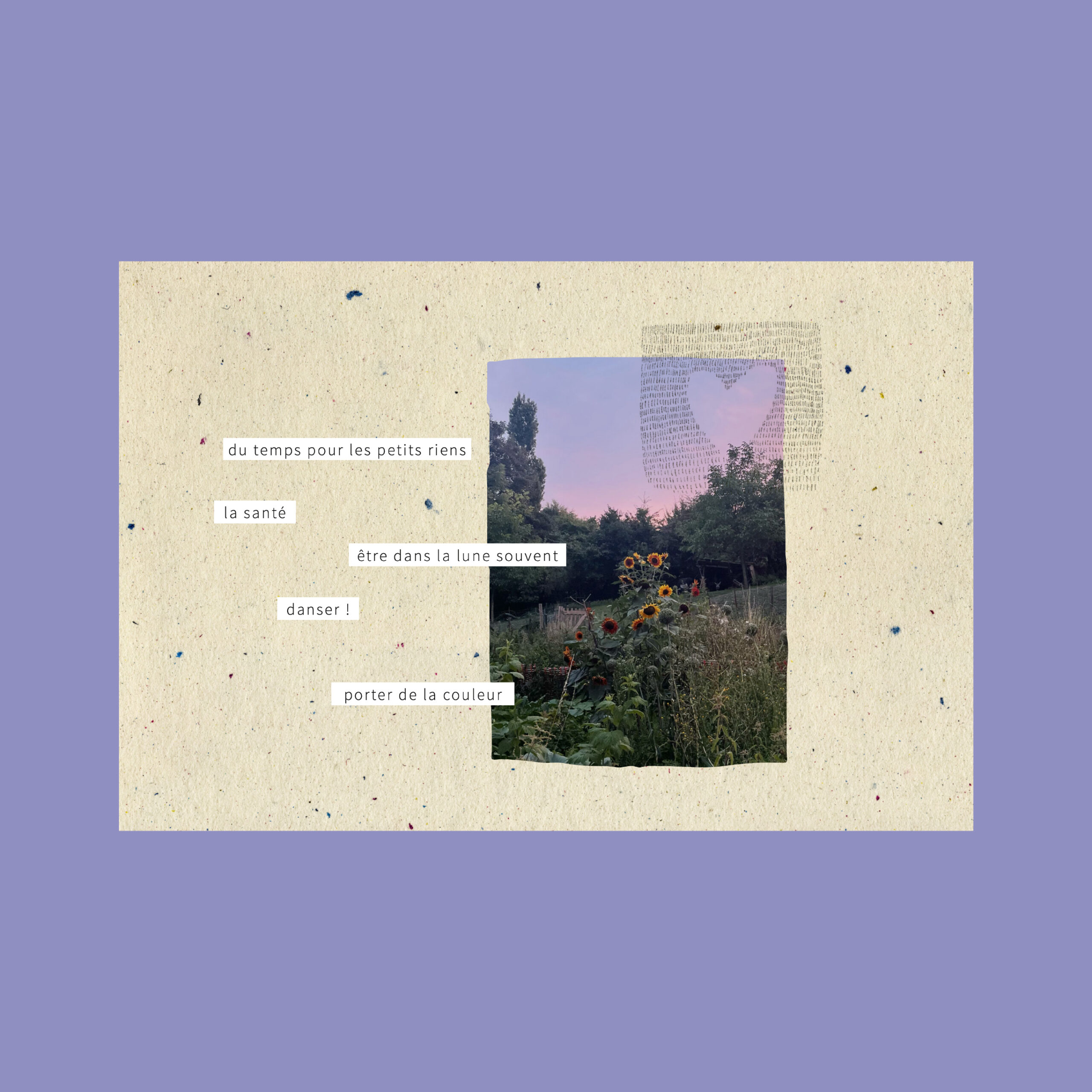 “du temps pour les petits riens, la santé, être dans la lune souvent, danser !, porter de la couleur” (= ma liste de souhaits pour cette année)